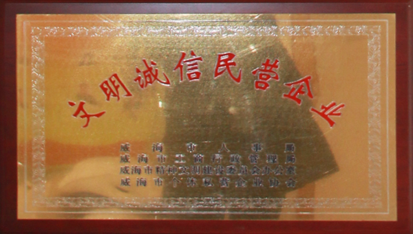 公司連續(xù)八年榮獲威海市“誠信開發(fā)企業(yè)”、“建筑施工誠信企業(yè)”,連續(xù)九年被評為威海市級“守合同重信用企業(yè)”,多次被評為威海市“市級文明單位”、“質(zhì)量管理先進(jìn)企業(yè)”、 “安全管理先進(jìn)企業(yè)”,乳山市“優(yōu)秀企業(yè)”、“先進(jìn)民營企業(yè)”、“納稅明星企業(yè)”,在社會上逐步樹立了誠信、穩(wěn)健的企業(yè)形象。